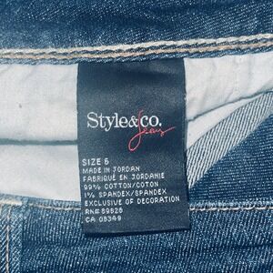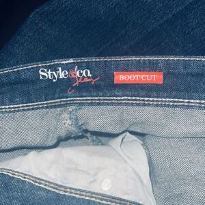 Keywords: Style & Co., bootcut jeans, womens jeans, dark wash denim, embellished pockets, size 6, denim jeans, casual jeans, boot cut, classic jeans, jeans with pockets, stylish jeans, dark wash