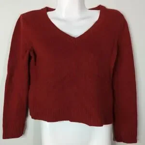 Max Mara Red V-Neck Oversized Cropped Pullover Sweater Size S