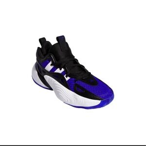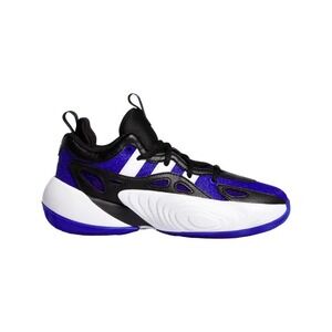 The product is a pair of Adidas Trae Unlimited Lucid sneakers in a multicolor design of blue, black, and white. Featuring a lace-up closure and a rubber outsole, these athletic shoes are designed for both activewear and casual occasions. With a grade-school size of 6Y (UK 5.5), they are suitable for boys and offer cushioning and comfort for walking, school activities, and basketball. The synthetic upper material and foam insole ensure durability and a pleasant fit, while the outdoor and sports themes reflect the style of the adidas Trae Young product line.