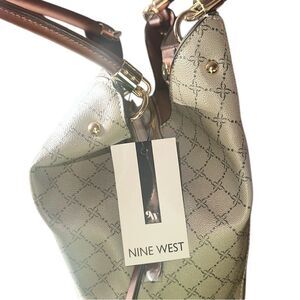 Nine West Etta Jet Set Carryall Bag. NWT. Faux Leather. This elegant beige and brown bag is perfect for any occasion. Crafted with attention to detail, it offers both functionality and fashion. Medium size. Perfect for any occasion. Super pretty and useful bag! 3 big compartments.