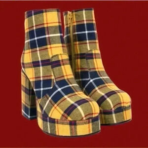 UNIF Yellow Y2K Plaid Platform Boots Women’s Size 9