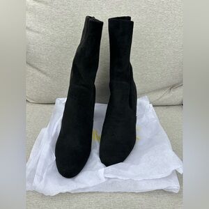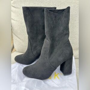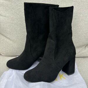 Allegra K Suede Style Block Heel Bootie Black. New, no box but comes with dustbag for each bootie. Small flaw on right bootie (top) as shown in pictures.