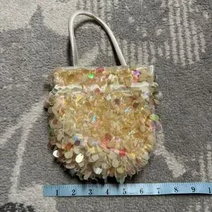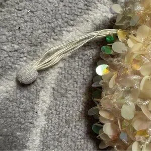 Jessica McClintock Satin Lined Beaded Sequin Yellow Ivory Drawstring Mini Bag