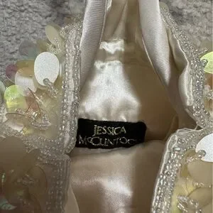 Jessica McClintock Satin Lined Beaded Sequin Yellow Ivory Drawstring Mini Clutch Formal Bag