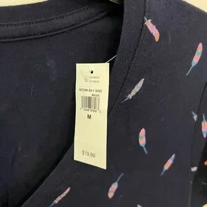 NWT Gap Women's Navy V-Neck Printed T-Shirt with a feather pattern