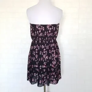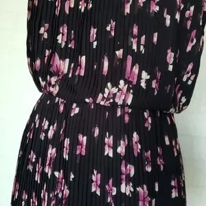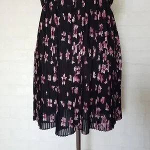 Black/ Purple Floral Pleated Dress