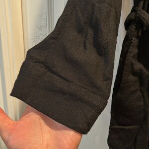 Gently worn LSpace Black Textured Gauze Button Front Romper women’s size medium. 100% viscose, black textured gauze material, collared, buttons up front, adjustable sash belt tie at waist, hip pockets, attatched shorts, 3/4 sleeves, relaxed fit. Offers accepted!