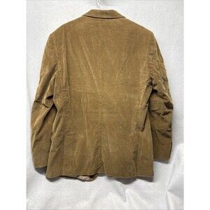 This Banana Republic Blazer is a classic and stylish sport coat made from tan corduroy cotton. Featuring a solid pattern, button closure, and lined interior, it is perfect for various occasions including travel, casual, formal, and business. With a classic fit and single-breasted design, this blazer adds a touch of sophistication to any outfit. The timeless brown color and elegant accents make it a versatile and wardrobe essential for men looking for a high-quality and fashionable outerwear piece.