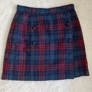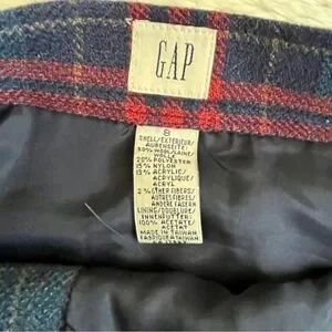 VINTAGE (1996) GAP Blue and Red Plaid Wool Mini Skirt