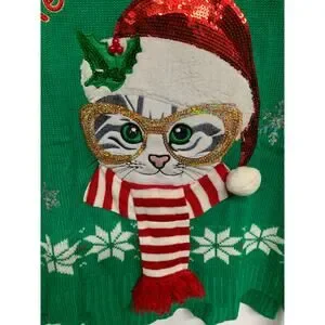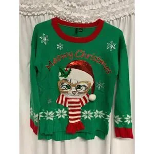 New Directions Petite “Meowy Christmas” Cat Ugly Christmas Sweater – Size PS