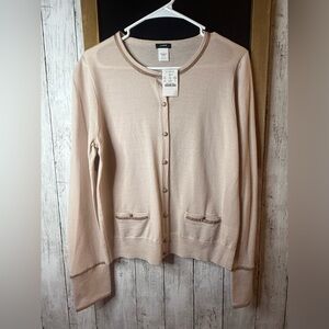NWT J.CREW Sweater Women's L Merino Wool Cardigan Button Up Beige with Pockets