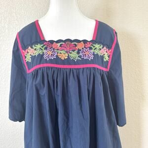 Go Softly Embroidered Floral Navy Blue Pink Patio Dress Size Lage Muumuu Caftan