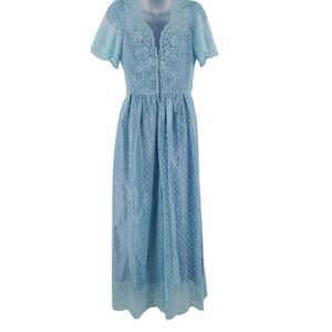 Vintage 1960s Powder Blue Lace Cap Sleeve Dress