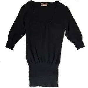 Velvet 100% Cashmere Black Tunic Sweater 3/4 Sleeve Size Small