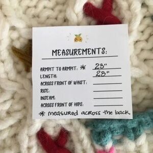 See Photos for Fabric/Care/Measurements (measurements with the Sweater laid flat… without stretching the fabric at all)