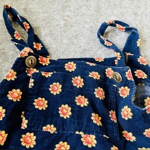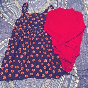 Navy blue with sunflowers corduroy feeling dress & solid red long sleeved onesie set, child size 5. Such an adorable versatile dress set!