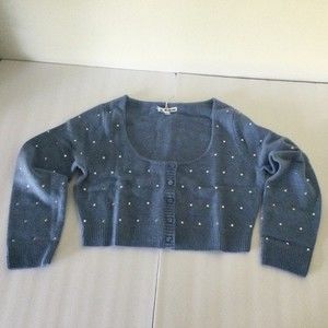 Reformation Nathalia Wool Cardigan Size L Preppy Embellished In Relaxed Blue
