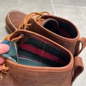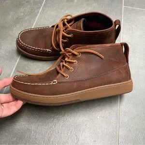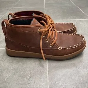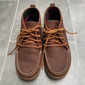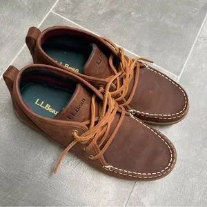 Retired style l.l. bean mens signature brown suede chukka moccasin style loafer mid ankle boot with suede lace up closure — Very comfortable and flannel lined for warmth — These comfy shoes can dressed up for all occasions or dressed down for everyday wear — Men’s size 9 — Almost like new, gently used just a couple of times, no outsole wear — From non-smoking home.