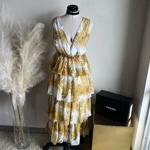 This yellow floral dress is iconic for summer making a statement with the tiered skirt. Feminine and romantic vibes perfect for special occasions or vacation. Whimsical and colorful flirty and fun! Yellow is the color of summer!