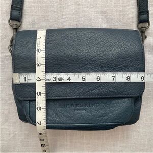 Great crossbody, really good condition but just not right for my needs. Lots of sections to organize your items. Adjustable strap. I conditioned the leather recently. See photos for measurements. Blue leather with dark gray hardware.