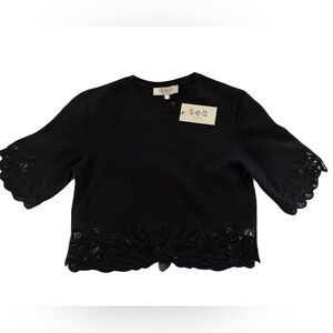 The chic Elke soutache sweater from Sea NYC features a cropped silhouette and detailed soutache embroidery on the sleeves and hem. 100% Cotton. Brand new, with tags.