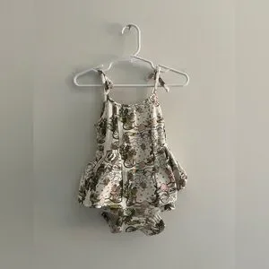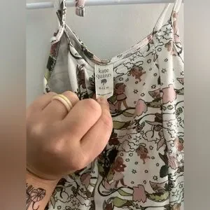 Adorable Kate Quinn baby bubble romper in the Flower Fairies print. Made from soft, 100% organic cotton with adjustable tie straps and snap closures at the bottom.
