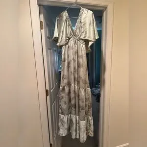 Green floral maternity dress from PinkBlush, material is very silky soft, only wore once to a wedding!