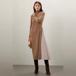 NAADAM Women's Brown Turtleneck Sweater Dress