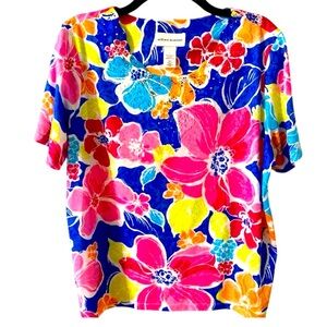 EUC ALFRED DUNNER Top, Embellishments, Lace, Floral, Sz L, Cottagecore, Artsy