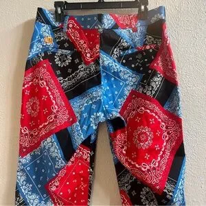 Red, blue and black bandana print