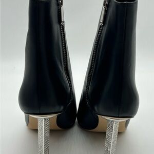 Chic black boots with a sleek design. Features a shimmering silver heel. Perfect for elevating any look. Gorgeous elegant boots