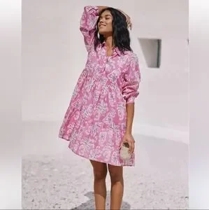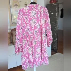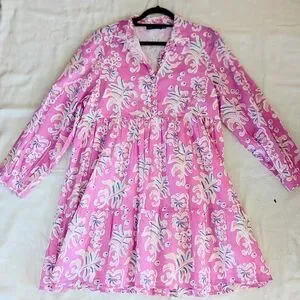 Tuckernuck Ro's Garden Dress XL Pink Floral Elvira Short Mini Dress Long Sleeve