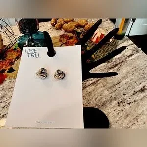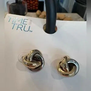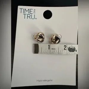 TIME & TRU | Hypoallergenic, Elegant Two-Toned Gold and Silver Metal Alloy | Post Style Knot Earrings
