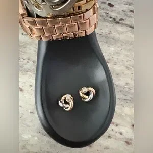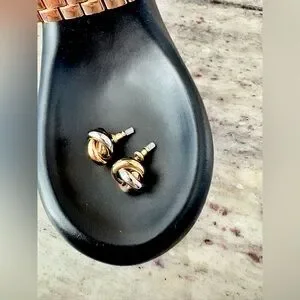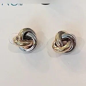 knot earrings, two-toned, lusterous, sophisticated, classy, classic, professional, business, church, gold, silver, post, gift
