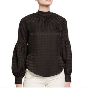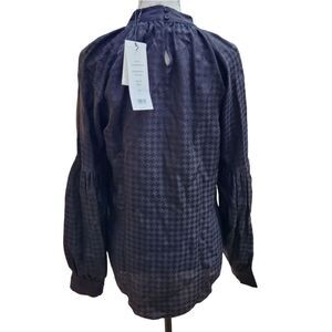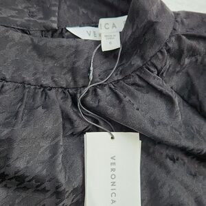 Veronica Beard NWT Cicely Silk-satin Blouse Long Sleeve Black Houndstooth Size 6