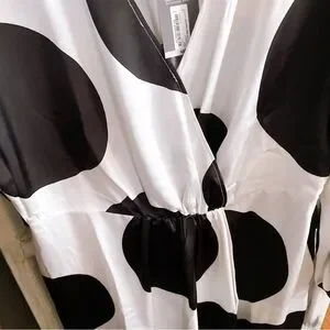 Worthington Black and White Polka Dot Wrap Dress Size Large