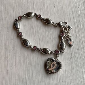 Like new retired Brighton vintage Power of Pink 2015 Love heals breast cancer charm Bracelet. EUC, great shape, Silver, pink and Swarovski Crystals in this commemorative bracelet. Approximately 8” with extender, see pictures for details.