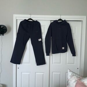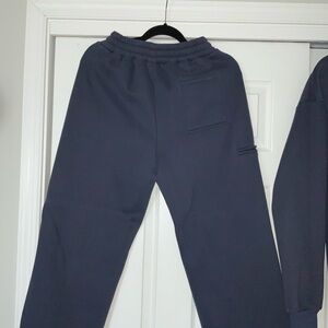 Comfrt Affirmation sweatsuit set, size medium, worn 2X. Great pre-loved condition. Comfortable navy blue sweatshirt and sweatpants set. Perfect for casual wear.