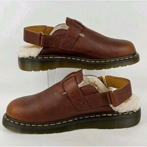 Dr. Martens Jorge II FL Faux Fur Lined Brown Leather Strap Mule WMNS 9 MENS 8