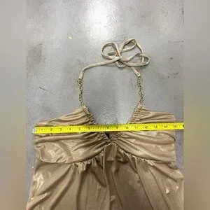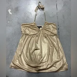 Vintage Y2k Express Gold Metallic Chain Going Out Halter Top SMALL sparkly party