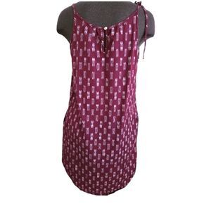 Excellent condition! Burgundy and white. Ties on the shoulder. Keyhole opening in the back. Chest:18" from armpit to armpit. Waist is a little over 18.5". Length:26.5" from the armpit down. Smoke-free, pet-free home!