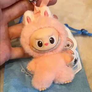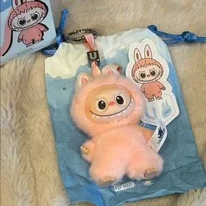 brand new labubu from pop mart’s pin for love series. this is a beautiful light pink - letter U! the box was opened from the bottom and carefully resealed so it can be given as a gift ready to be opened!! box comes with the labubu in the drawstring bag and the sticker. this is a duplicate (I started getting individuals but then grabbed a few full sets), which is why i’m hoping to find it a nice home. 100% authentic (check my reviews!).