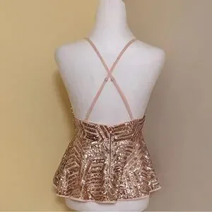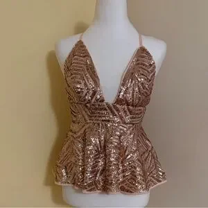 Forever 21 Sequin Halter Crop Top - Pink Gold