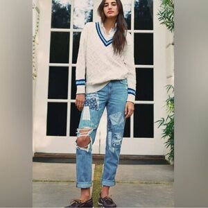 American Eagle Outfitters Blue Patchwork Mom Straight Jeans 12