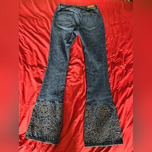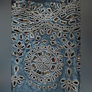 Shyanne flared blue jeans with embroidery and cut work at the hems