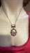 Elegant vintage-style necklace featuring a floral pendant and bow design. The gold and red colors add a touch of classic charm.