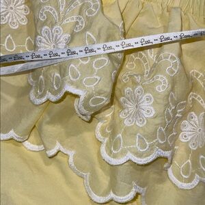 Chic yellow blouse with white floral ruffle detail. Great condition, only worn once and still has hanger strap for easy hanging. Ideal for sunny outings.