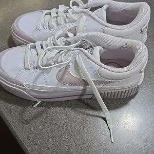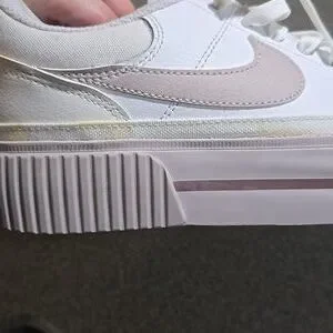 Nevwr Worn. Nike shoes with a white base and light pink details. Ideal for everyday style. A few yellow glue areas near sole (see pictures)