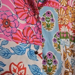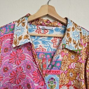 ZARA Patchwork Floral Satin Button Front Blouse Multicolor Boho Size XXL