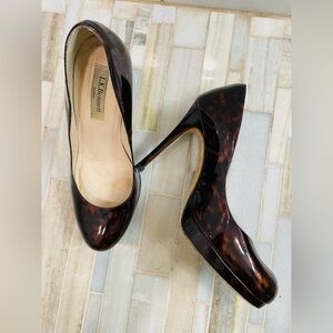 Authentic LK Bennett “Sledge” patent leather platform pumps in the rare tortoiseshell color.